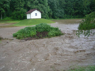 heftigen Regenschauer war der Zöbernbach an mehreren Stellen über